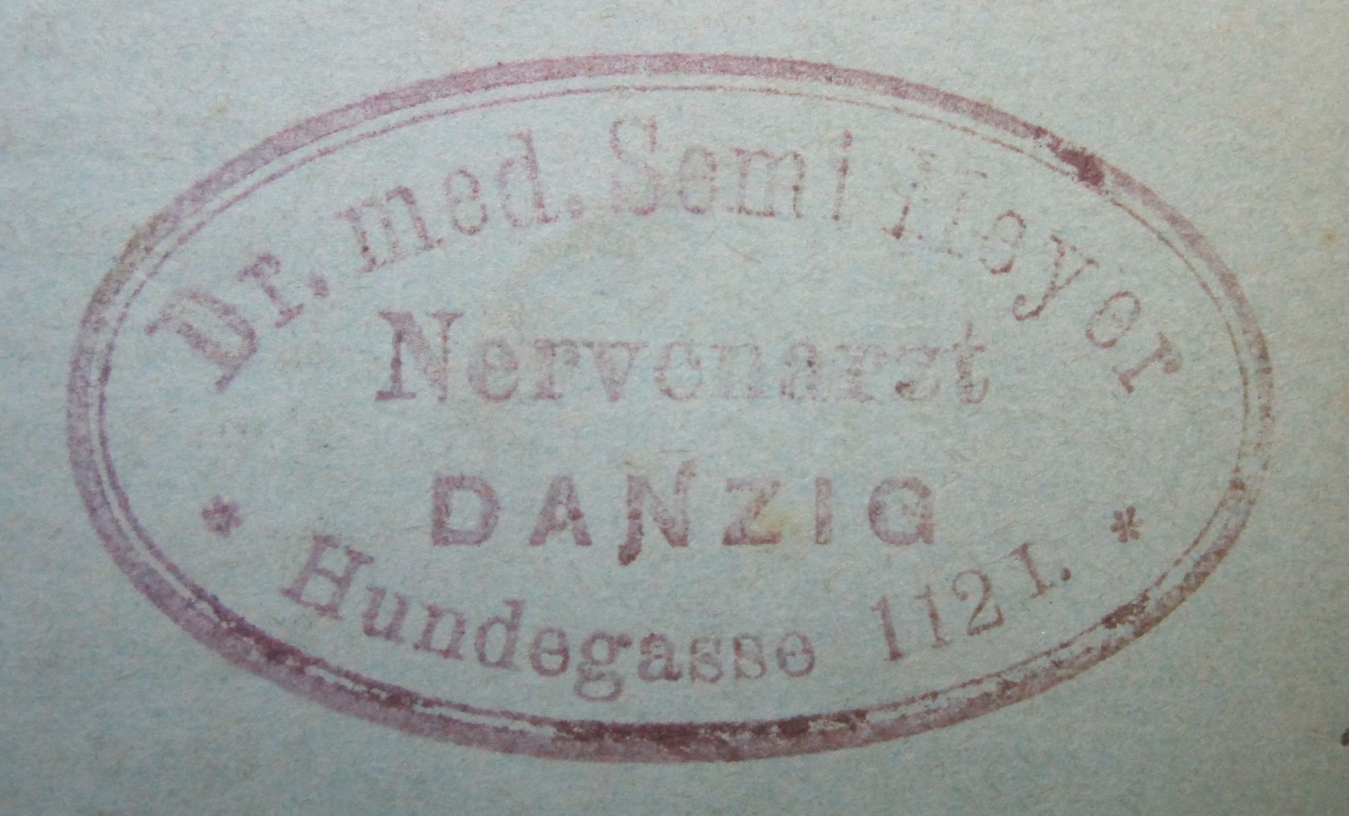 Semi Meyer wurde am 14. Januar 1873 im preussischen Kröben geboren. 1899 heiratete er die am 30. Dezember 1869 geborene Adele Meyer. Er studierte Medizin, wurde Nervenarzt und praktizierte als solcher in Danzig. Semi und Adele Meyer geb. Meyer hatten eine gemeinsame Tochter, die am 22. März 1906 in Danzig geborene Hildegard Marie. Semi Meyer starb am 30. November 1937 in Danzig. Seine Witwe Adele Meyer wurde im Dezember 1942 ab Danzig in das KZ Theresienstadt deportiert und dort am 8. Januar 1943 ermordet. Hildegard Marie Meyer konnte 1939 in die USA flüchten und überlebte so die Shoah.