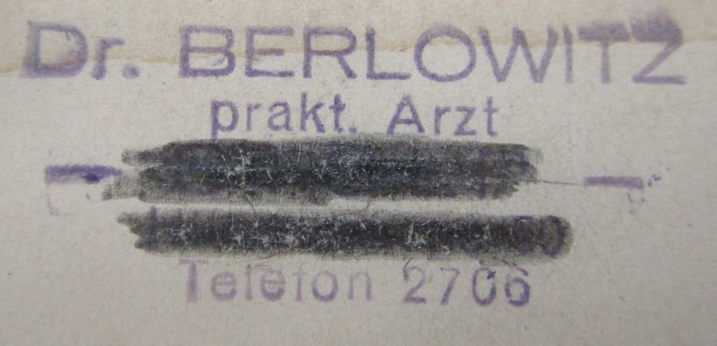 Wolf Hirsch Berlowitz wurde am 21. Juli 1885 in Kaunas geboren. Er wurde Arzt und praktizierte in Stolp in Pommern und später in Berlin. Wolf Berlowitz war verheiratet mit der am 24. November 1888 in Krojanke geborenen Rosa Klein. Das Paar hatte zwei Töchter; die am 28. Mai 1917 in Scharnikau geborene Emmy und die am 2. November 1918 in Berlin geborene Judith Mathilde.